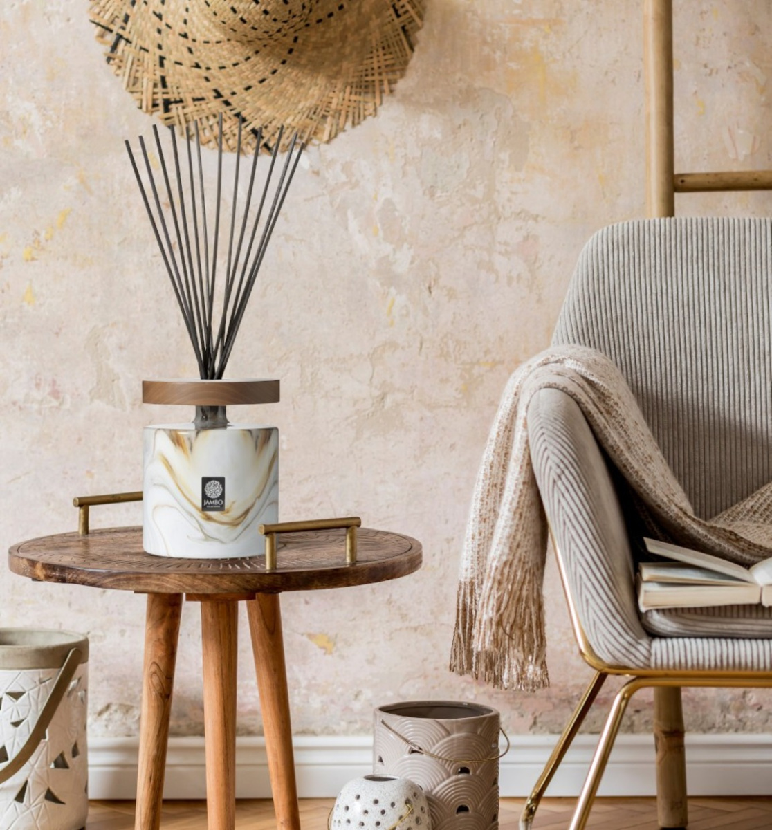 Pour une note subtile laissez vous séduire par nos bougies et diffuseurs Jambo au design Chic et raffiné avec leurs détails en noyer qui parfumeront votre intérieur.